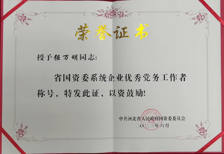 公司智能所支部委員會榮獲“先進(jìn)基層黨組織”榮譽稱號;下屬公司冀科公司黨支部榮獲“黨建工作與生產(chǎn)經(jīng)營深度融合先進(jìn)單位”榮譽稱號;公司黨委書記、董事長強萬明同志榮獲“優(yōu)秀黨務(wù)工作者”榮譽稱號;公司專職黨委副書記句德勝同志榮獲“優(yōu)秀共產(chǎn)黨員”榮譽稱號。
